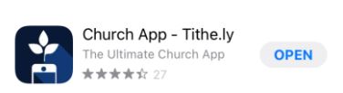 Look for “church app – tithe.ly” in the app store (or android equivalent) & Download